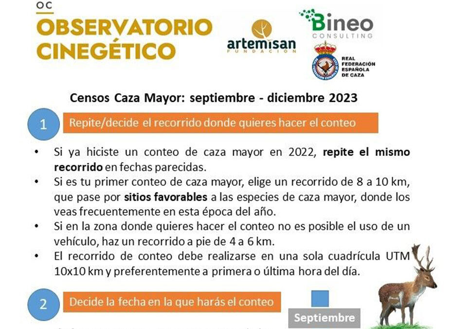 24 de septiembre de 2023. El Observatorio Cinegético ha puesto en marcha la campaña de censos de caza mayor que se va a llevar a cabo entre los meses de septiembre y diciembre. El objetivo es superar los resultados del año pasado, que cerró con un aumento del 48% en los censos registrados.