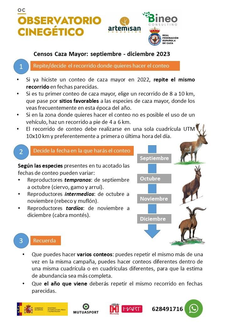 Los interesados en participar en el Observatorio Cinegético y en obtener más información, pueden hacerlo accediendo a la página web: www.observatoriocinegetico.org o contactando a través de Whatsapp en el teléfono: 628 491 716.