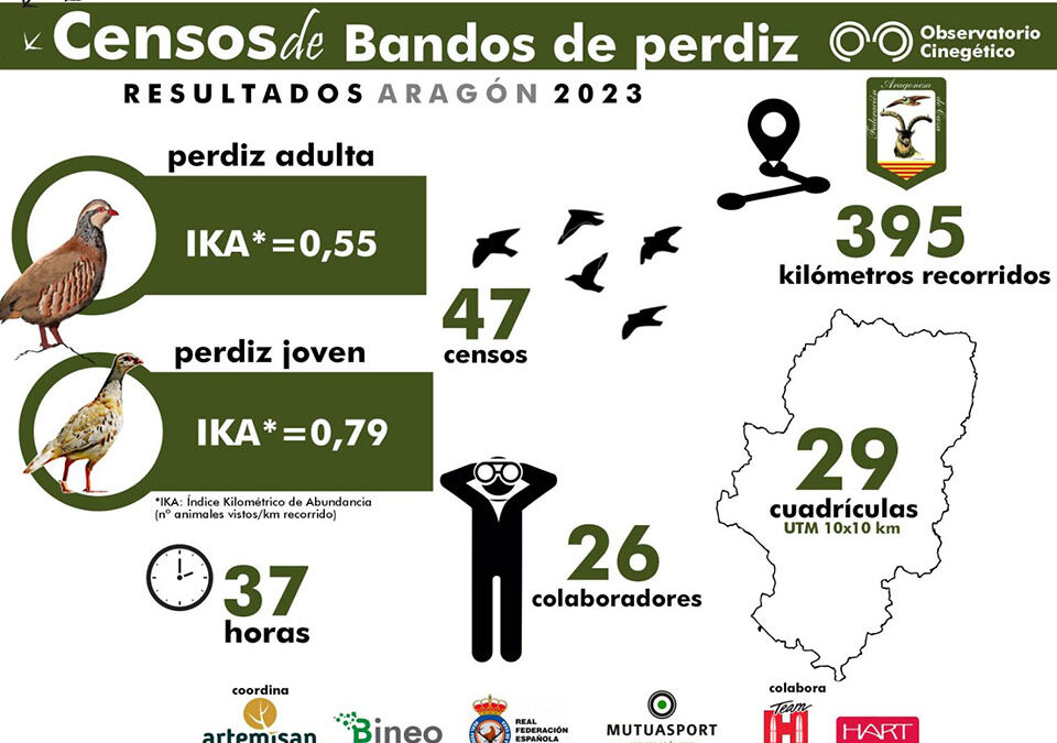 octubre 28, 202327 de octubre de 2023. La primera campaña de censos de bandos de perdiz organizada por el Observatorio Cinegético ha gozado de muy buena acogida en Aragón. La iniciativa ha contado con 26 colaboradores, que han registrado 47 censos, para los que recorrieron 395 kilómetros y en los que invirtieron un total de 37 horas de trabajo.