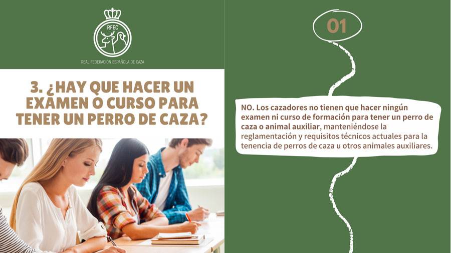 No. Los cazadores no tienen que hacer ningún examen ni curso de formación para tener un perro de caza o animal auxiliar, manteniéndose la reglamentación y requisitos técnicos actuales para la tenencia de perros de caza u otros animales auxiliares.