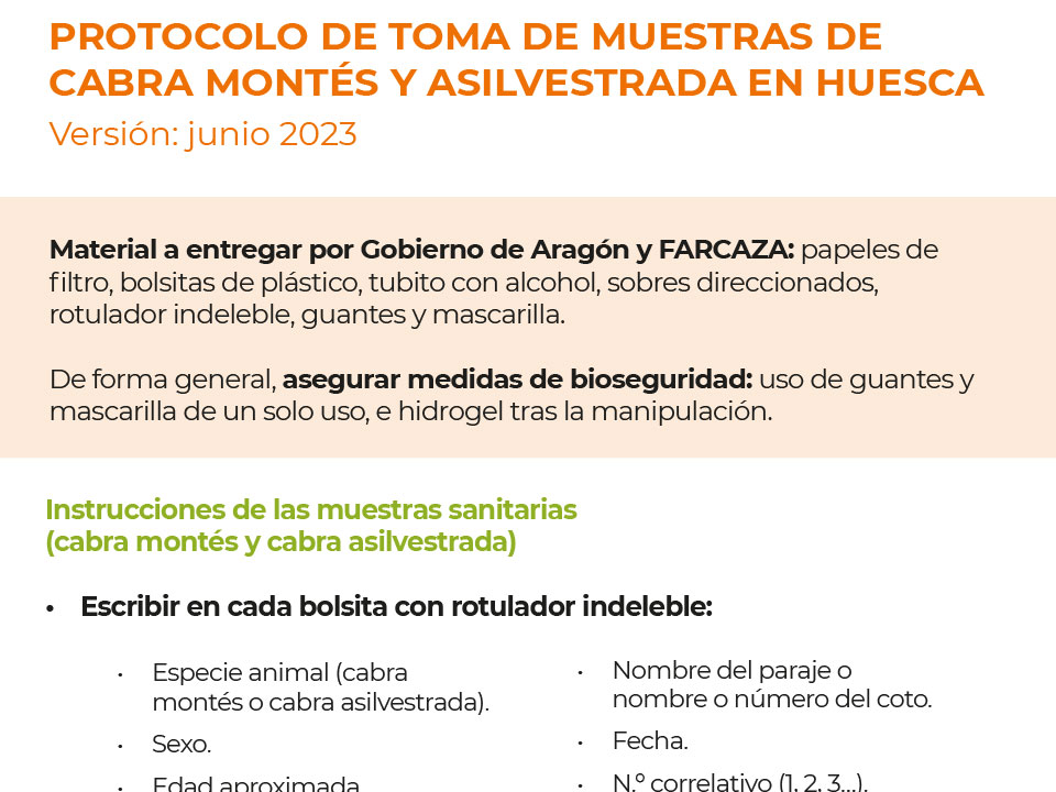 En el protocolo se han especificado instrucciones sencillas tanto para la toma de muestras sanitarias, para la cabra montés como para la asilvestrada (sangre en papeles de filtro), como genéticas, en este caso sólo para la cabra montés (músculo en tubitos con alcohol).