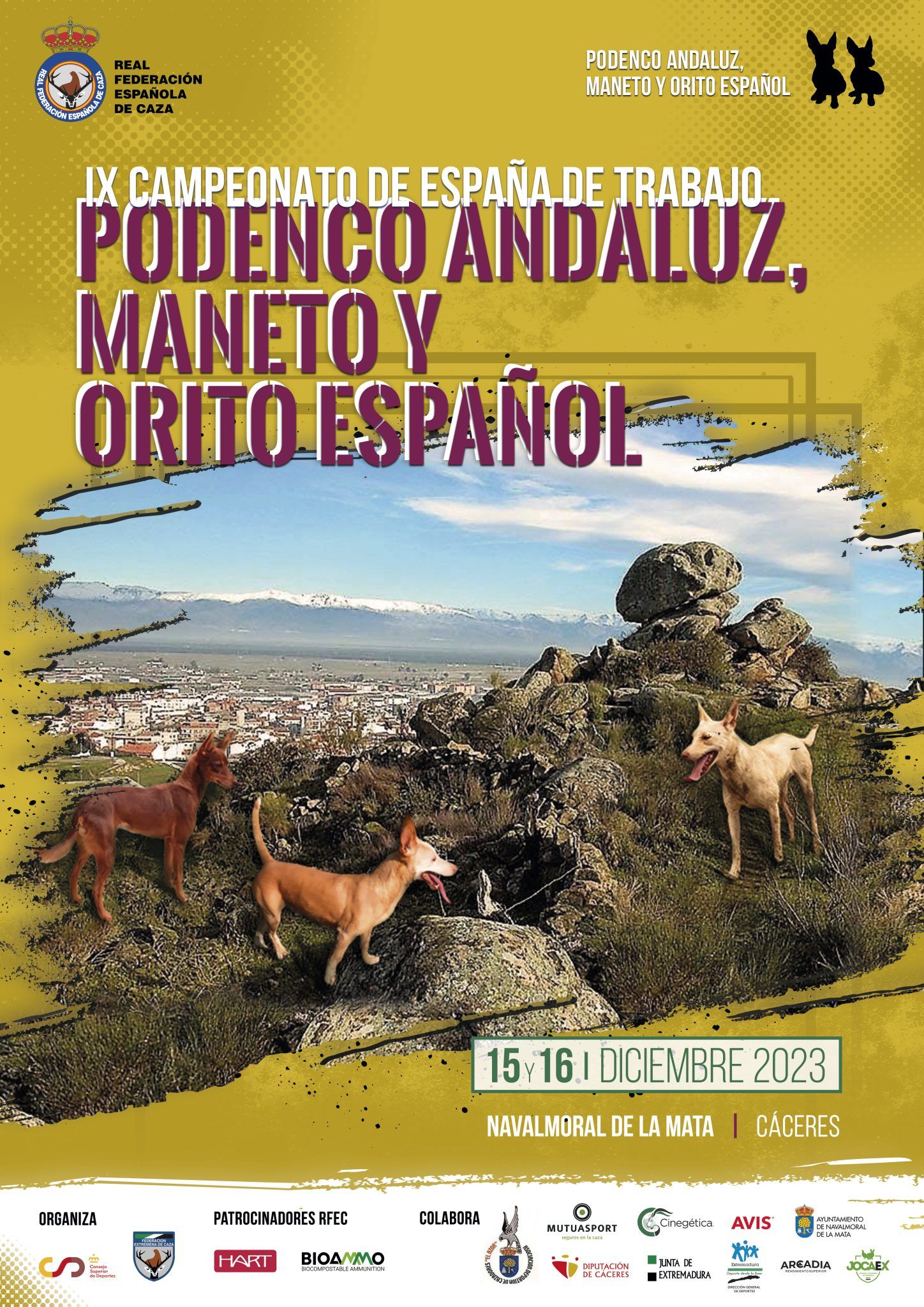 El IX Campeonato de España de trabajo para Podenco Andaluz, Maneto y Orito Español está organizado por la Real Federación Española de Caza (RFEC), el Consejo Superior de Deportes y la Federación Extremeña de Caza, se realizará bajo la supervisión del delegado nacional de Podenco Andaluz y Maneto de la RFEC, José Ginés Cañizares.