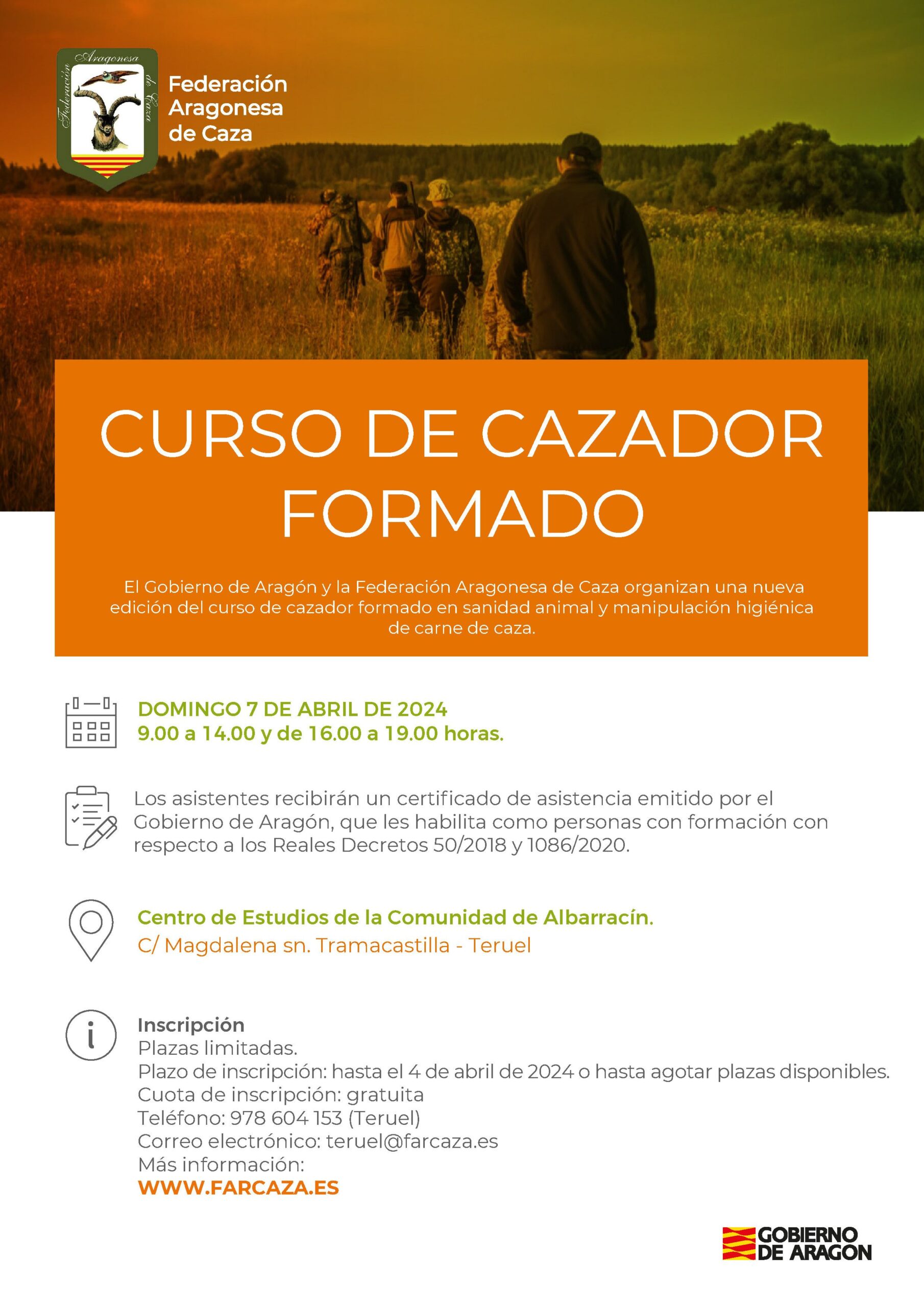 27 de marzo de 2024. El Gobierno de Aragón y la Federación Aragonesa de Caza (FARCAZA) han organizado una nueva edición del curso de cazador formado en sanidad animal e higiene de la carne de caza.