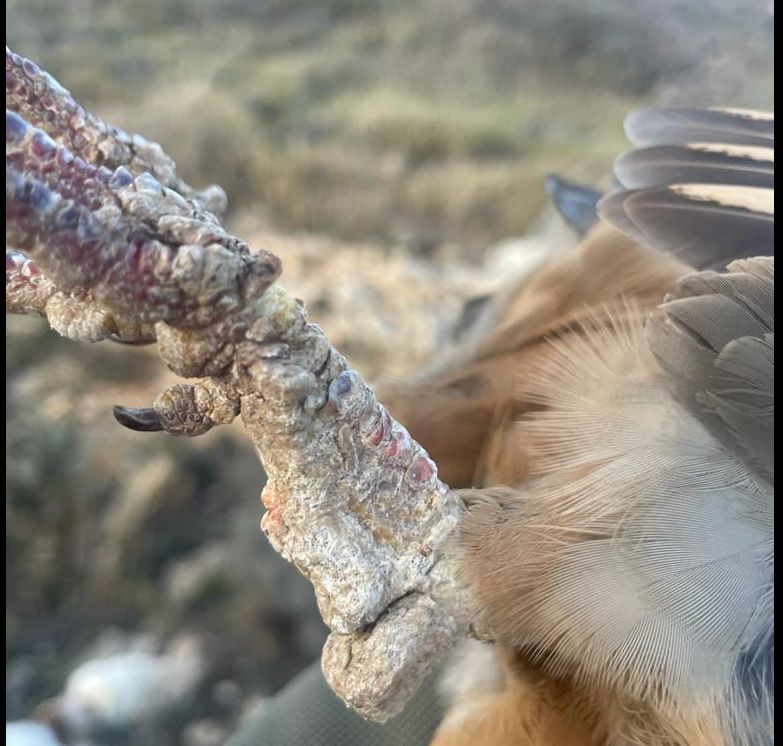 - De acuerdo a la bibliografía científica disponible y experiencia de campo actual es una parasitosis leve. Pese a lo impactante de las lesiones costrosas en las patas no se considera una enfermedad grave que limite la subsistencia de la perdiz roja silvestre.