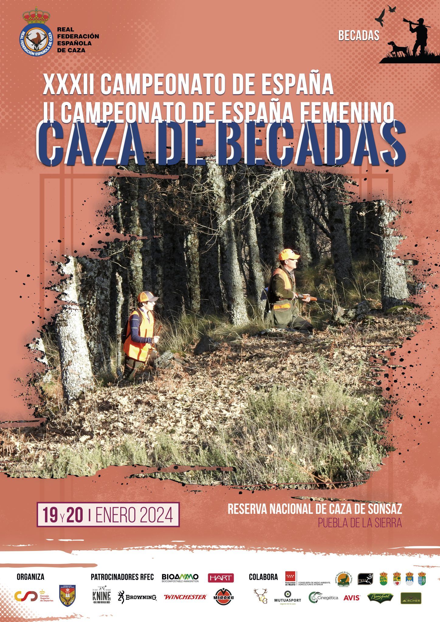 El Campeonato de España de Caza de Becadas 2023 contará con el patrocinio oficial de Bioammo, HART, KNINE, Browning, Winchester y Miroku y la colaboración de Mutuasport, Cinegética, Avis, Cárnicas Dibe, Ayuntamiento El Atazar, Armería Carril García, Ayuntamiento de Montejo de la Sierra, Benisport, Ayuntamiento de Puebla de la Sierra, Archer, Ayuntamiento de La Hiruela y la Consejería Medio Ambiente, Agricultura e Interior de la Comunidad de Madrid.